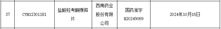 近日,国家药监局(NMPA)官网信息公示显示,太极集团子公司西南药业申报的4类仿制药盐酸羟考酮缓释片(规格:10mg)获批生产并视同过评,为国产第3家获批。